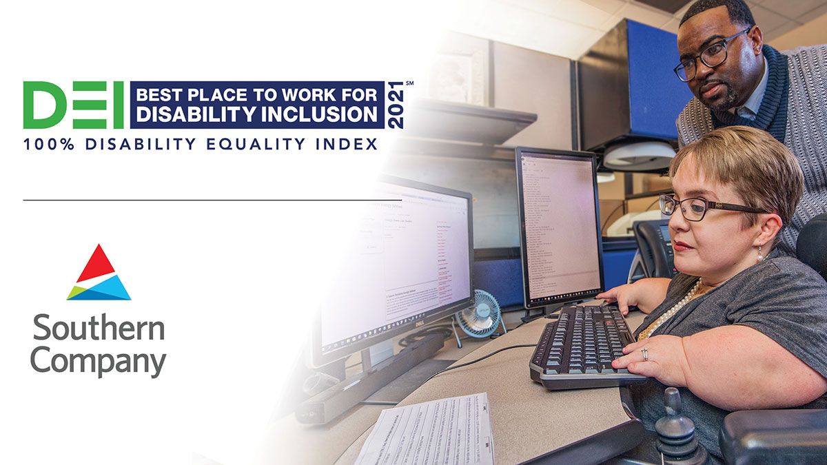 The 2021 Disability Equality Index (DEI) has rated Southern Company as one of the "Best Places to Work for Disability Inclusion." For the fifth consecutive year, Southern Company joins an elite group of companies with a 100 percent score on the DEI for a strong dedication to leading disability-inclusion practices.