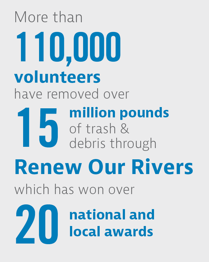 Since 2000, our subsidiaries have led Renew Our Rivers, a national award-winning campaign to remove debris from rivers and other waterways originated by an Alabama Power employee. This grassroots volunteer program has grown into community watershed cleanups on river systems and other waterways in four southeastern states.