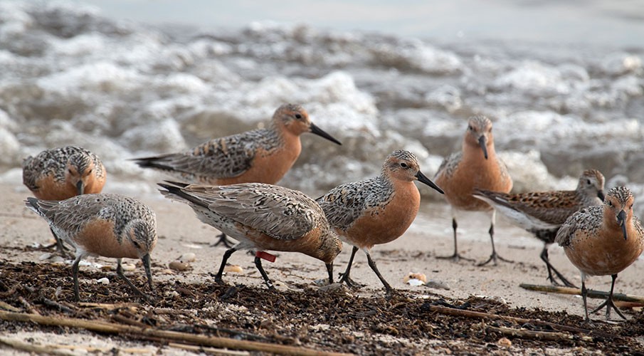 Beaches and coastal areas are important stopover sites for migratory shorebirds such as the red knot, which travels thousands of miles from its Arctic breeding grounds to wintering sites in South America. The Gulf and Atlantic Coasts support important breeding populations of beach nesting birds. This includes three types of plovers – piping, Wilson’s and snowy. All share an affinity with sandy beaches where birds forage, nest and seek refuge. Plovers lay their eggs in shallow depressions on beaches. Because of their camouflaged coloration, few people are aware of their presence, so nesting sites are highly vulnerable to disturbance, particularly by humans and dogs. Two additional species – the least tern and black skimmer – also rely on the beach for nesting, often occupying the same beach space as plovers. All five species are struggling to find sufficient habitat to breed.